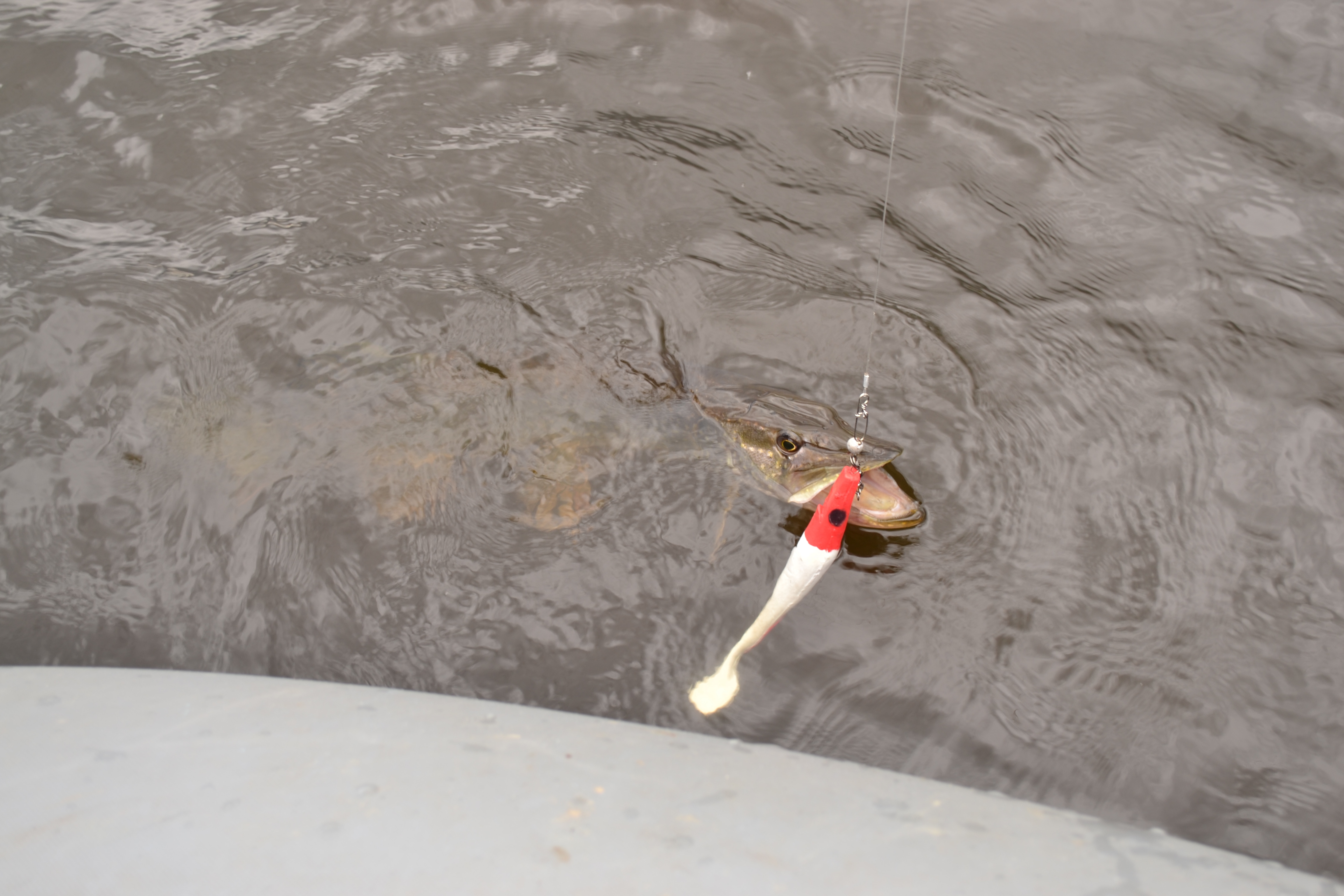 Я был рад что папа поймал такую большую щуку и этим поставив свой новый джерковый рекорд, и этим я понял что у меня есть шанс поймать такую же , и в самом деле я ее почти поймал она выпрыгнула у самой лодки за джерком ,но у меня не получилось ее до ловить. Я не много из-за этого расстроился, но чего расстраиваться то, у меня же таких щук будет куча.