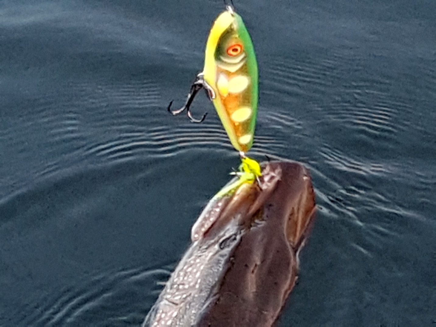 Petty Perch не подвел и как результат щука на 10600 и 112 см на гора)) Фотки только такие ибо был один в лодке а подробности уже в отчете позднее...