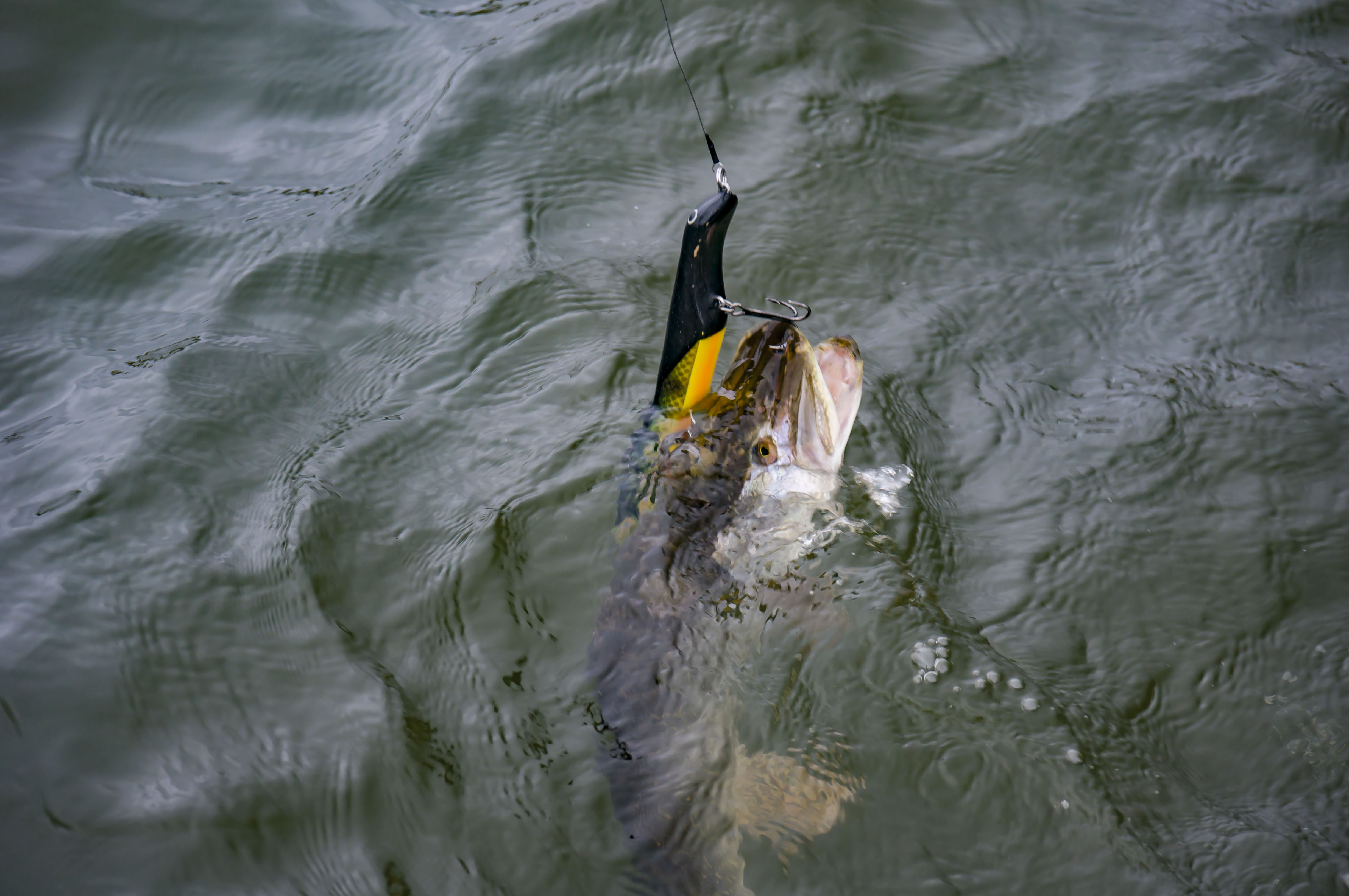 Одним из наиболее эффективных способов проводки этих приманок на мой взгляд будет использование коротких быстрых рывков с небольшой паузой между каждым движением рывка, такая некая имитация раненной рыбки. Хотя подход проводки одинаков, то сам принцип исполнения движения этими приманками выглядит по разному: Zeus HТ сразу достаточно резко мощно амплитудно раскачиваясь из стороны в сторону атакует и выходит на рабочую глубину, на паузе медленно выравнивается и горизонтально всплывает с эффектом вращения вокруг оси, подвешенная блесенка в купе с родным но усеченным хвостом от родного HAWG TEASER оказались весьма под стать характеру приманки, блесну бросало из стороны в сторону и колеблющий посеребренный блеск был видит даже на значительном расстояние так же как и видим был хвост со своими мощными вращениями ... DOK Killer, имеет меньший угол атаки но боле размашистую и резкую игру, на паузе джерк замирает, подымает голову и очень медленно всплывает, очень эффектно и по своему вкусно... Уловив ритм, мне показалось что козырной проводкой может быть у Киллера убегающая или потерявшая ориентацию рыбка. В общем с прогонами и подъемами можно еще по экспериментировать, думаю что можно найти и другие интересные для хищника действа с приманками, а так, имхо приманки удались, и если их применять по назначению то разочарований не будет....