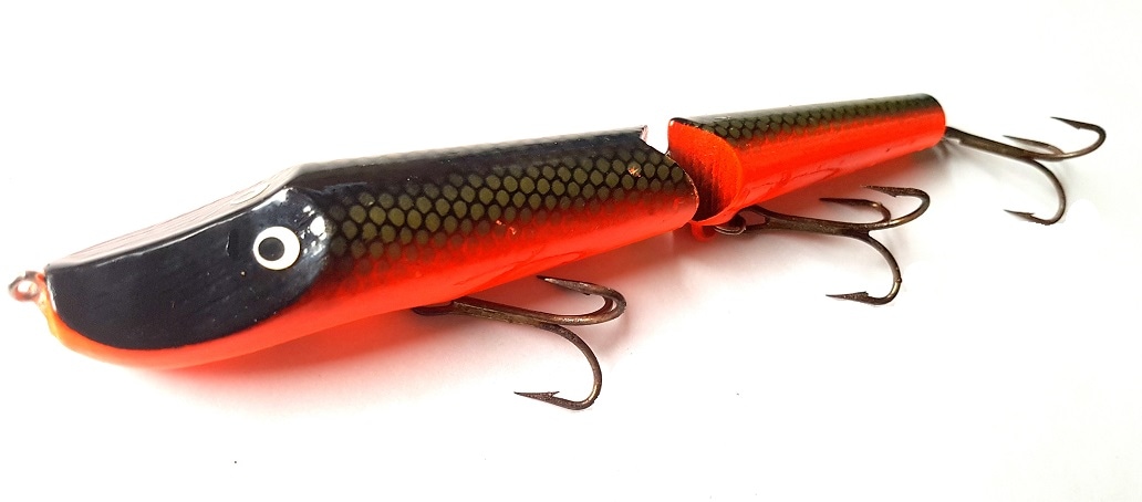 двух составной Hi Fin Fooler в ярко красном цвете, и обычных то не сыщешь, а тут такой и без лопаты.... Есть у меня обычный классический с хвостом сзади с ним все понятно, а вот с этим придется разобраться. Не понятно пока что дает этот хвост. Но у прагматичных американцах просто так вряд ли что будет.... Длина 9 дюймов и вес 2 1/4ун. Понятно что поверхностный, на потяжках заныривает хвост колтыхается но не сказать что прям что то кроме заметной волны нет. Ну и на всплытие приманка изгибается это то же может быть какой то эффект. Что еще не ожиданно выяснилось что джерк на прямой проводке скользит по поверхности и создает приличную килевую волну. Создается впечатление что приманка заточена под адские заросшие мелководья. Решил приманку чуть усовершенствовать и поставить огрузку. В начале лепил джеркспоты пока не получил две точки на которых есть интерес пробовать ловить... С огрузкой появилась большая инертность в заглублении с соответствующе и притормаживается лучше на всплытие. В выбраное точки в крутил винты . Один как служит как заглушка, а на другой насадил 5 полтора грамовых спотов, теперь у меня разборный груз и две точки установки. Если в процессе ловли окажется что надо еще то сделать доп отверстие то это не проблема. Это на мой взгляд очень удобный способ и надежный способ балансировки который экономит время и груза....