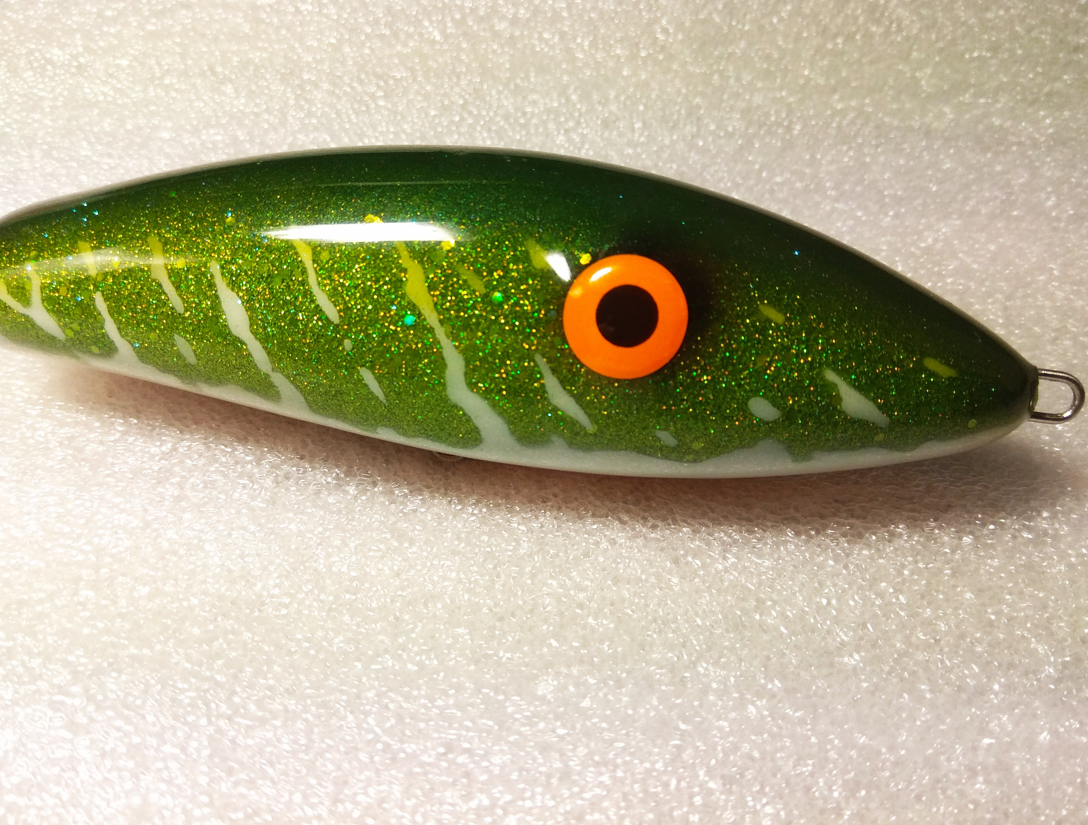 Решил делать в размере 16 см , медленно тонущий , гремящий.Жаберные крышки сделал объемными как на оригинальном джерке. Оговорюсь , джерк вышел не совсем короткоходным и вертлявым , а с глайдами средней длины. Вес джерка с тройниками Owner 2/0 - 125 гр.