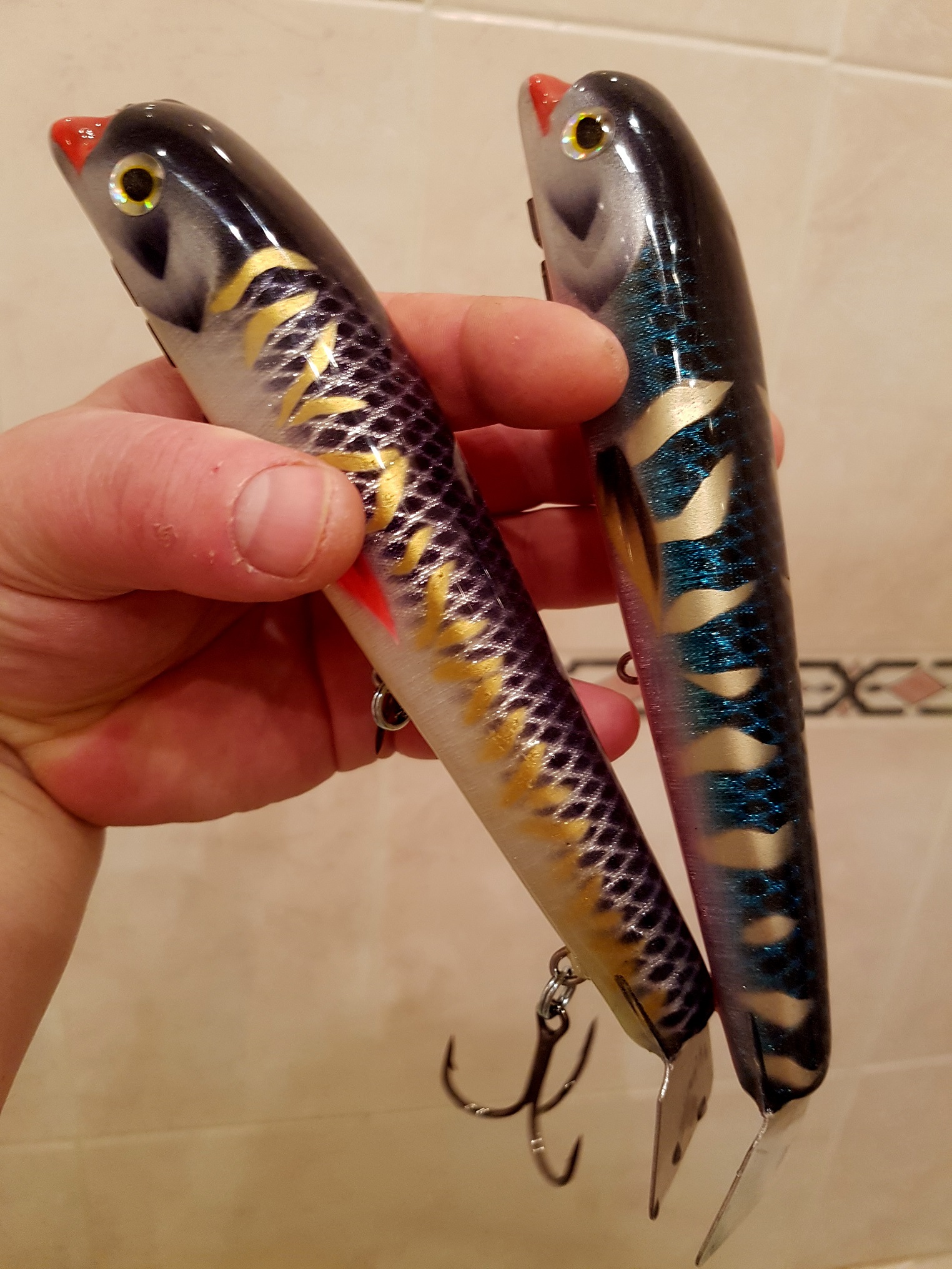 Три шада.... все по 14см медленно тонущие. Первые впечатления! Верхний и нижний казалось бы схожи, но в игре белый разворачивался чуть ли не в обратную сторону, потрясающая поворачиваемость. Нижний так же делает хороший разворот с подвиливанием хвоста. Джерки среднеходы. Названий пока нет. В густерку, так пока назвал, просто влюбился, в ней есть все и поворот, и проход, и качение... Еще надо погонять но предвижу что приманка удалась, в прочем как и первые две.