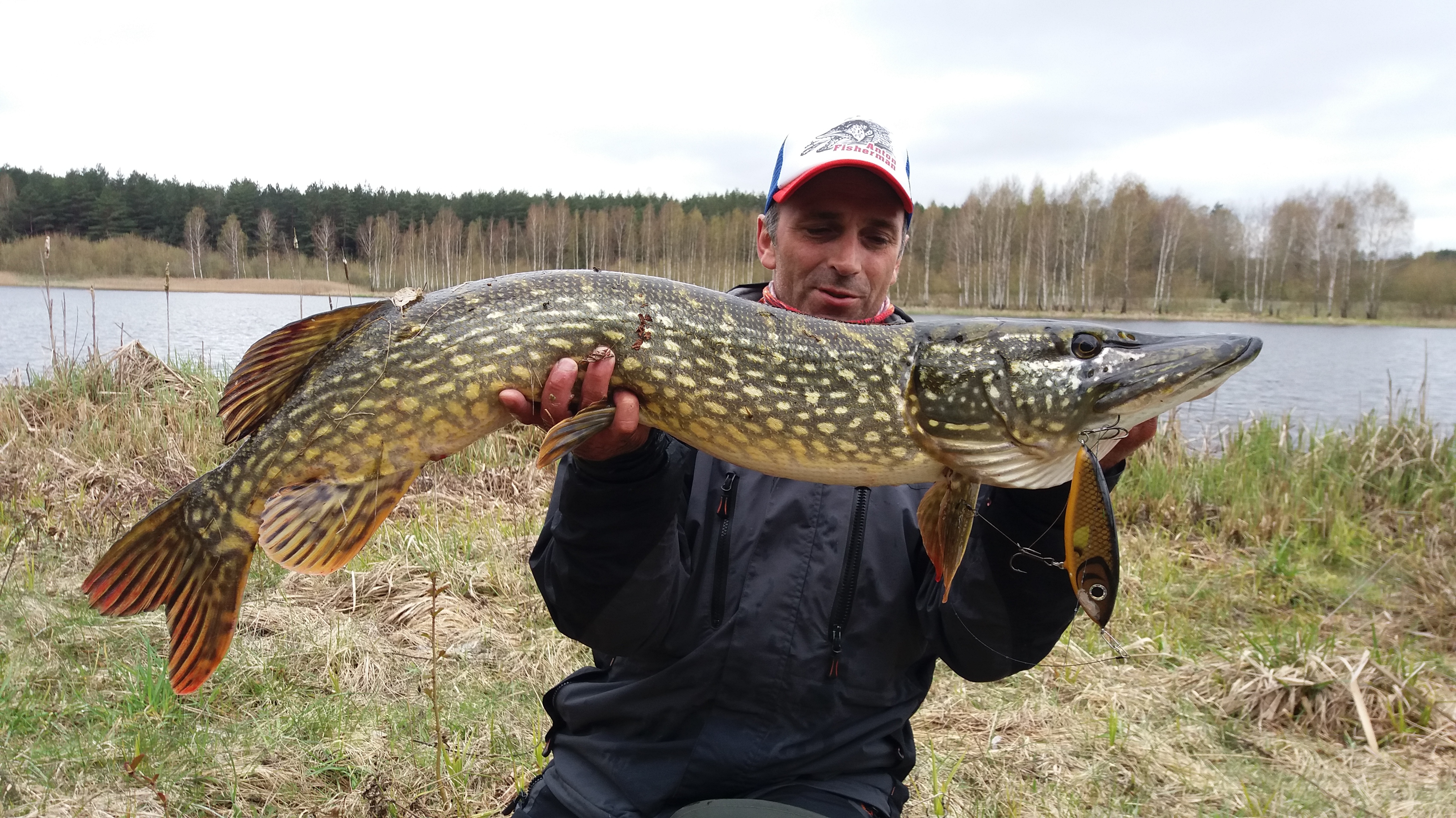 Утро нас встретило хорошей погодой и мы двинулись на лесное озерцо!Спустя час долгожданный бам и первая рыба на берегу!)))Ловящие рядом спиннингисты притихли,а сначала они стебались над моими приманками(я уже привык к такой реакции рыбачков,меня этот стёб даже немного забавляет!!!)))А когда выпустили рыбу у них вообще отняло мову...!Идём дальше...Каст,каст и ещё раз каст!)))на выбросе получаю потяжку,секу и понимаю,что на том конце шнура хорошая рыба!!!!Зову Андрея,прошу чтобы он поснимал,но он увидев рыбу он растерялся и момент вываживания не снял,ну да ладно!Видео,что есть добавлю позже!Рыба атакавала джерк жадно,Pike Inspector глубоко в пасти пришлось откусить один тройник,чтобы не травмировать рыбу!Замер,ЕСТЬ!!!новый мой береговой рекорд 114см по хвосту!!!Фотосессия,отпускаем рыбу и опять облом со съёмкой,пока фоткали высаживаем телефон(((Надо приобретать камеру!Идём пить чай к машине ставим телефон на подзарядку,рассказываю Андрею особенность проводки,подбираем джерк и идём дальше к устью.... но там ловится мелкая щука!Но мы не растроены,цель достигнута!Андрей поймал первую джерковую рыбу,я поставил личный береговой рекорд и разловил неразловленные джерки!Спасибо тебе озеро за незабываемую рыбалку,до новых встреч!!!
