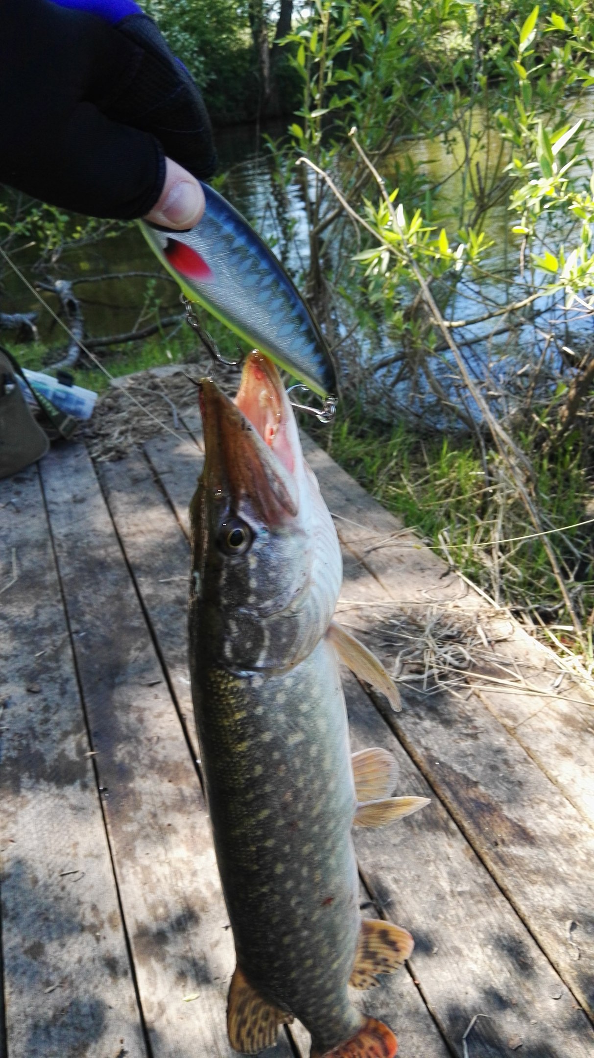 Попытка открыть сезон №2 в Велинке: неделей раньше ощутил полное фиаско,потому что не увидел ни одной рыбы, что было впервые для меня на этом водоеме, поэтому приехал на реабилитацию. И на первой же точке получил поклевку, но не засеклась. Через 15 минут на 2-ой точке визуально наблюдал выход, как в замедленной съемке: волна от берега, торпеда нагоняет джерк, открывается пасть, раздуваются жабры, изгиб для финального броска и ...... промах. Ну хоть вижу, что не спит рыба. Дальше пошли поимки, всего 4 с половиной)) Половина - это пострадавшие зрители в виде верховки. Щуканы стоят на бровках, реагируют на проводку сначала с резкими "дергами", чтобы привлечь внимание, потом плавными - для атаки. На крупный джерк было больше выходов, чем на даунсайз: 4 против 2. Крупняка не было, все кило+. Те, что больше, еще болеют после нереста. На фото есть работы наших мастеров))