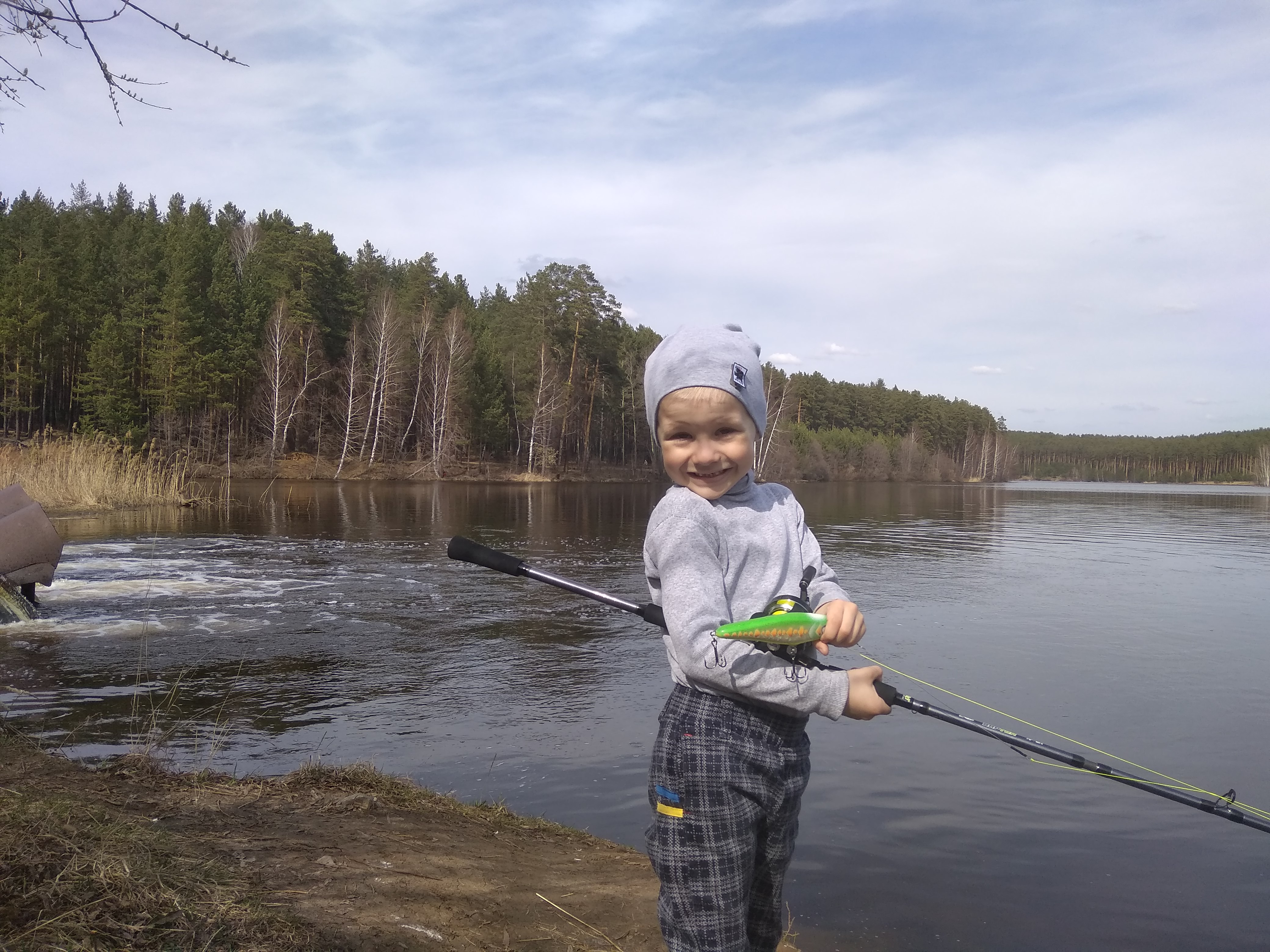 Прогулялись сегодня до водоёма.Лёд сошёл, можно и любимые снасти в руках подержать. Катушки крутятся, джерки и воблеры плавают,дети приобщаются к рыбалке-красота. Правда младший расстроился,что ни поймали ни чего. Объяснил,что надо учится. ;)