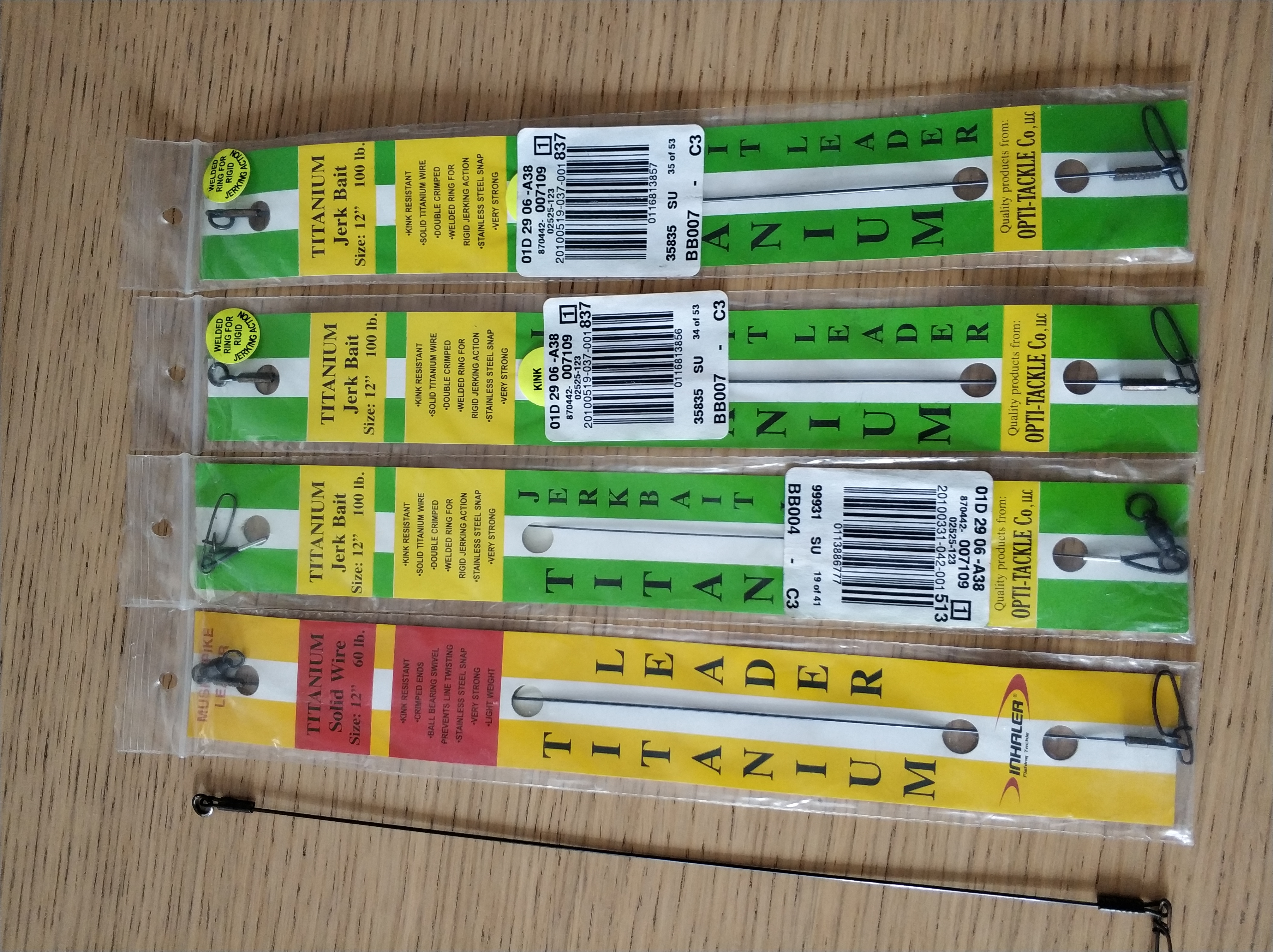 Есть джерковые поводки: - фирменные титановые и Savagear из нержавейки, и самодельные из нержавейки.