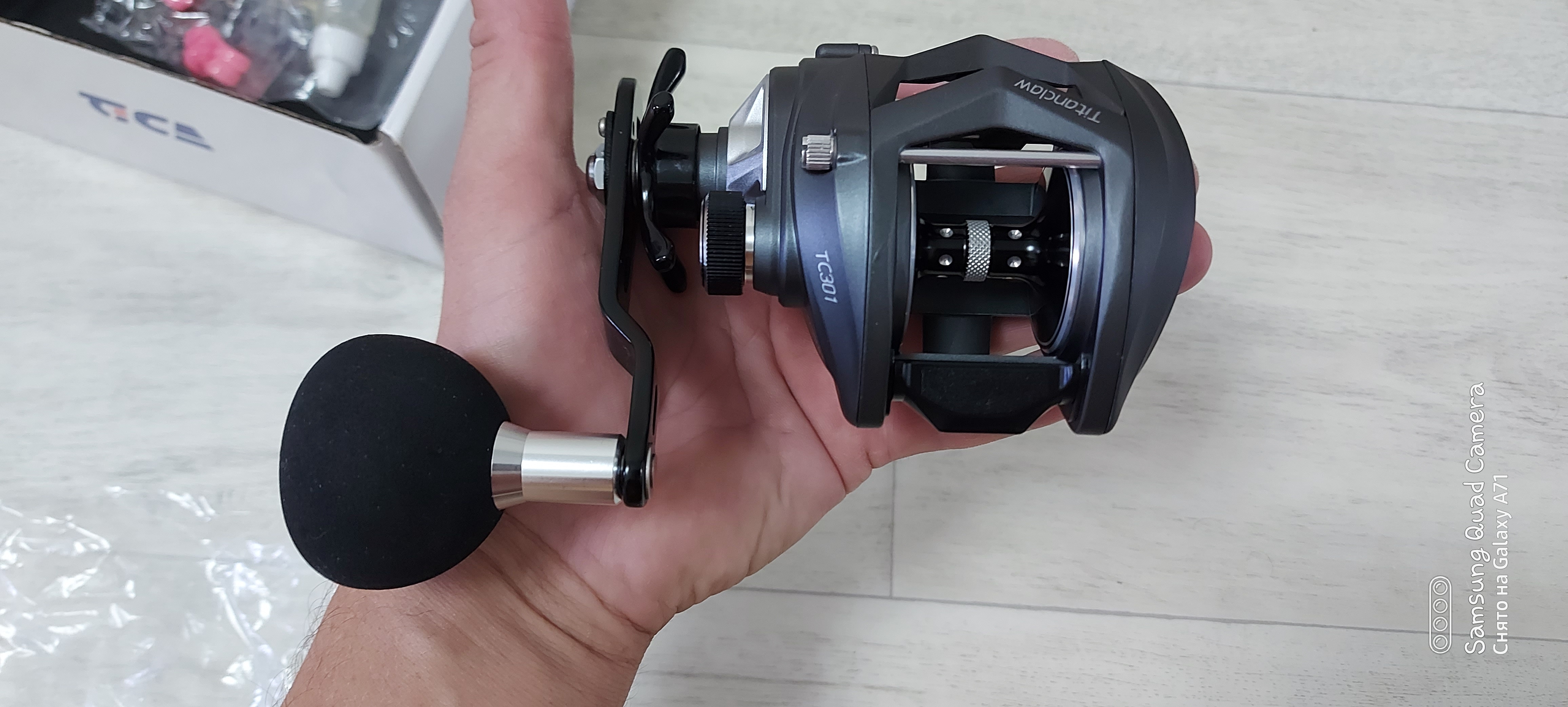 Бонусом кастомная карбоновая 2х кнобовая рукоять( кнобы на шарикоподшипниках).Отлично считается с карбоновыми вставками на корпусе.