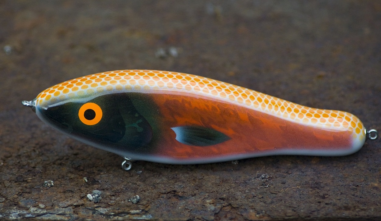Хочу поделиться впечатлениями от пользования джерком LA GATZO TRAP M PEACOCK. Так получилось, что этот джерк я купил как раз после открытия сезона в апреле, где мне удалось пополоскать достаточное количество джерков: и кастомных, и серийных джеркбэйтов в пластиковом и деревянном исполнениях. Feedback с деревянными джерками мне понравился очень, и как раз на фоне новых ощущений, до этого гонял только серийные пластиковые джерки, я и прикупил пару деревях. Тем более, что джерк от LA GATZО удалось погонять на покидухах, и он мне понравился своей игрой и исполнением. Мне, как новичку, легко удавалось его завести буквально на расстоянии 1,5-2 метров, да и полетные качества на высоте: компактный и тяжёленький. Я в цвет/раскрас верю, соответственно, когда решил взять себе на пробу, то выбор пал на естественный окрас – окунь. Сделан и покрашен джерк на мой вкус великолепно. Упирался я в него два выезда подряд. Пытался подобрать игру и вот на последних покидухах он сработал. По презентации приманки: давал ему утонуть, а дальше достаточно короткими и резкими ударами заводил его, давая закончить ему каждый глайд, иногда выдерживал небольшие паузы, в общем пытался не мешать ему.  Ну вот получилось разловить его, щука взяла жадно, глубоко. Были поклёвки и позже на него. В итоге джерком очень доволен, становится всё более понятным для меня.
