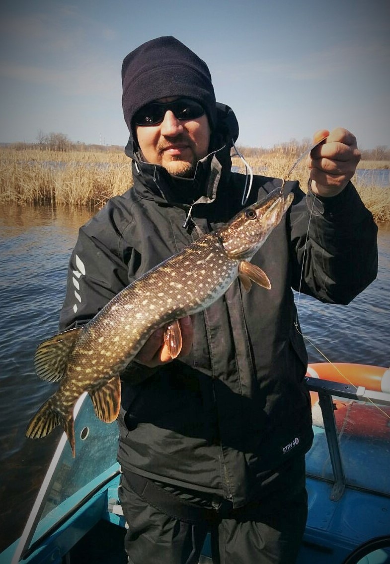 ). И что характерно - их законодатели "угадали": щука нифига не на нересте, шляется за стаей бели на бровках 8-9 метров, кушает джиг (не мелкий, "5 дюймов +\-") со дна с жестким перегрузом . Причем, только темные цвета. Хотя уговорить егерей уйти с меляков и экспериментировать в поисках рыбы стоило больших трудов. Возможно, рыба и готова к нересту, но аномальное похолодание её останавливает. Мегатрудовая рыбалка, 5 щук на лодку за день, еще с десяток поклевок. Джерки игнорит, хотя полдня убил, перебрал все новинки и проверенные варианты.