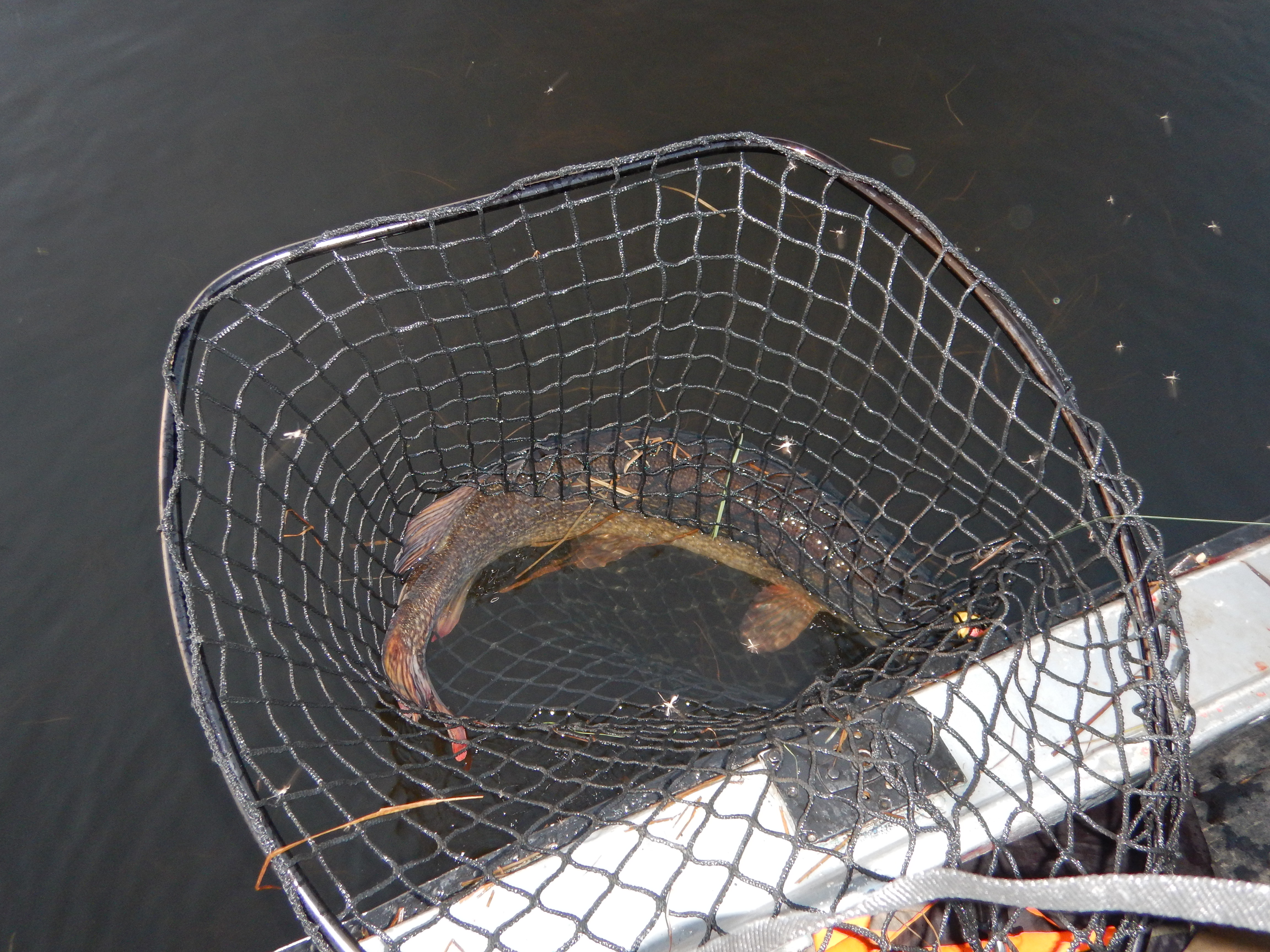 Резюме крайней поездки: все рамки отработали хорошо, и наши с Виталей фирмовые, и денискина Салмо. Хотя несколько раз перемещали рыб 7-9 кил по воздуху с борта на борт (на одном борту были убраны весла и прочие помехи для работы с щукой в подсаке).