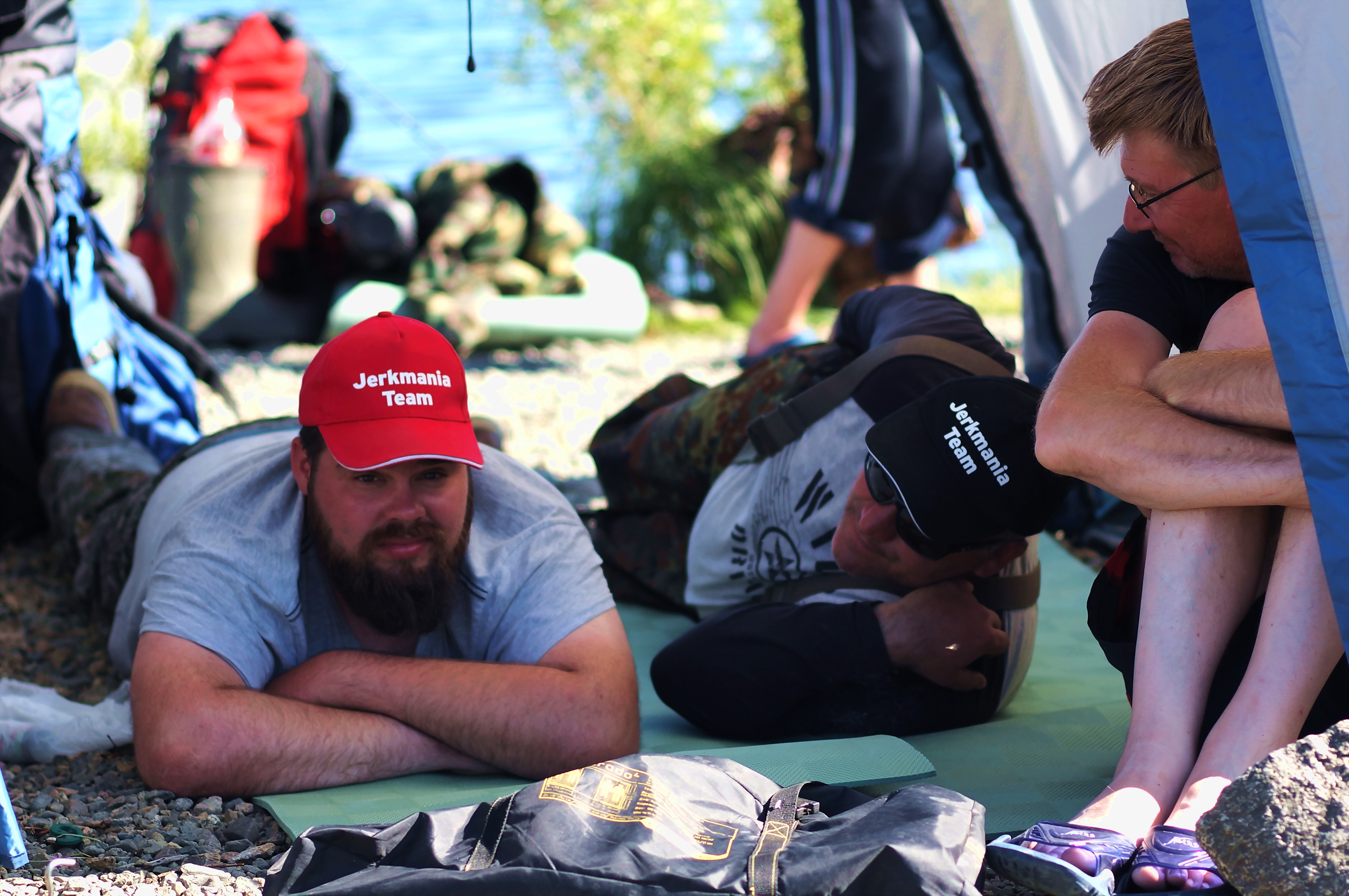 Жара. В палатках душегубка и заснуть практически не возможно. Второй день мужики купаются . Всем не хочется выходить на ловлю ища спасения в лагере. По мне так лучше со спиннингом , там хоть чуть обдувает ..