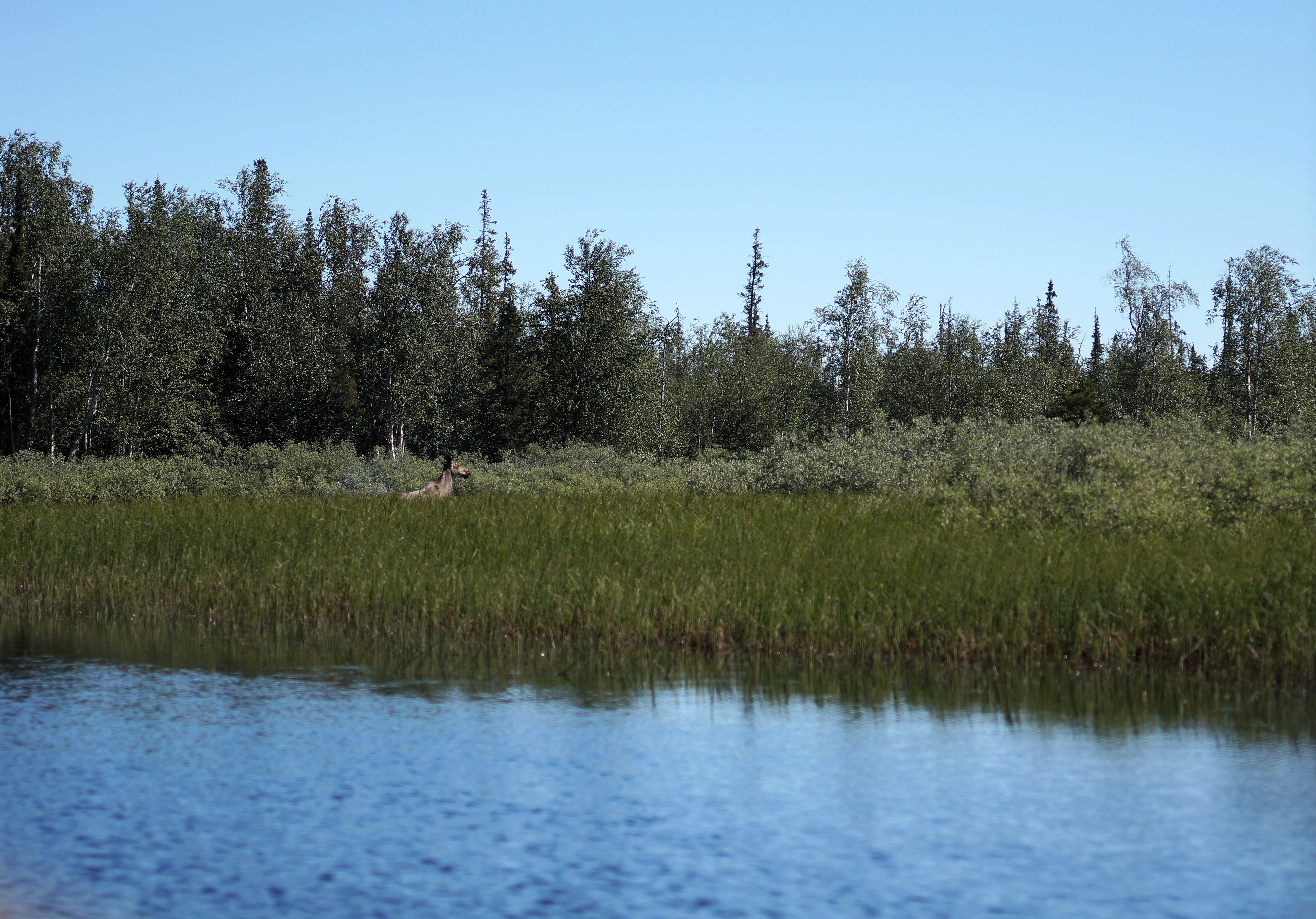 Оказалась лосиха. Оценив её в килограммах мяса расстроился, что скорее она нас троих нагнёт, чем мы её и связываться с ней не стоит..